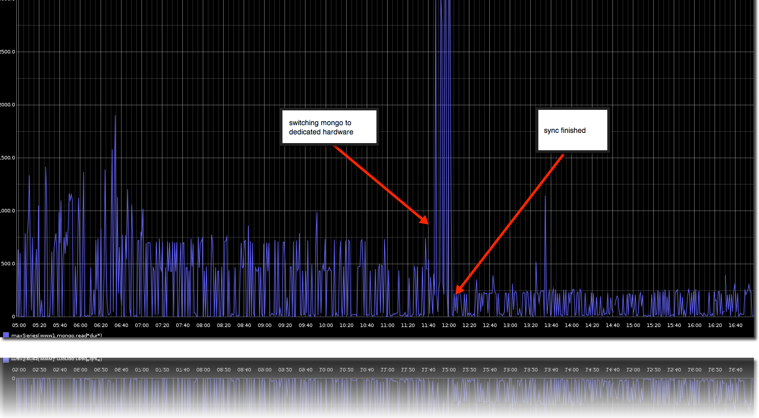 Nach dem die Synchronisierung beendet war hatten wir allein dadurch, dass wir migriert haben, die Antwortzeiten der Mongo halbiert: