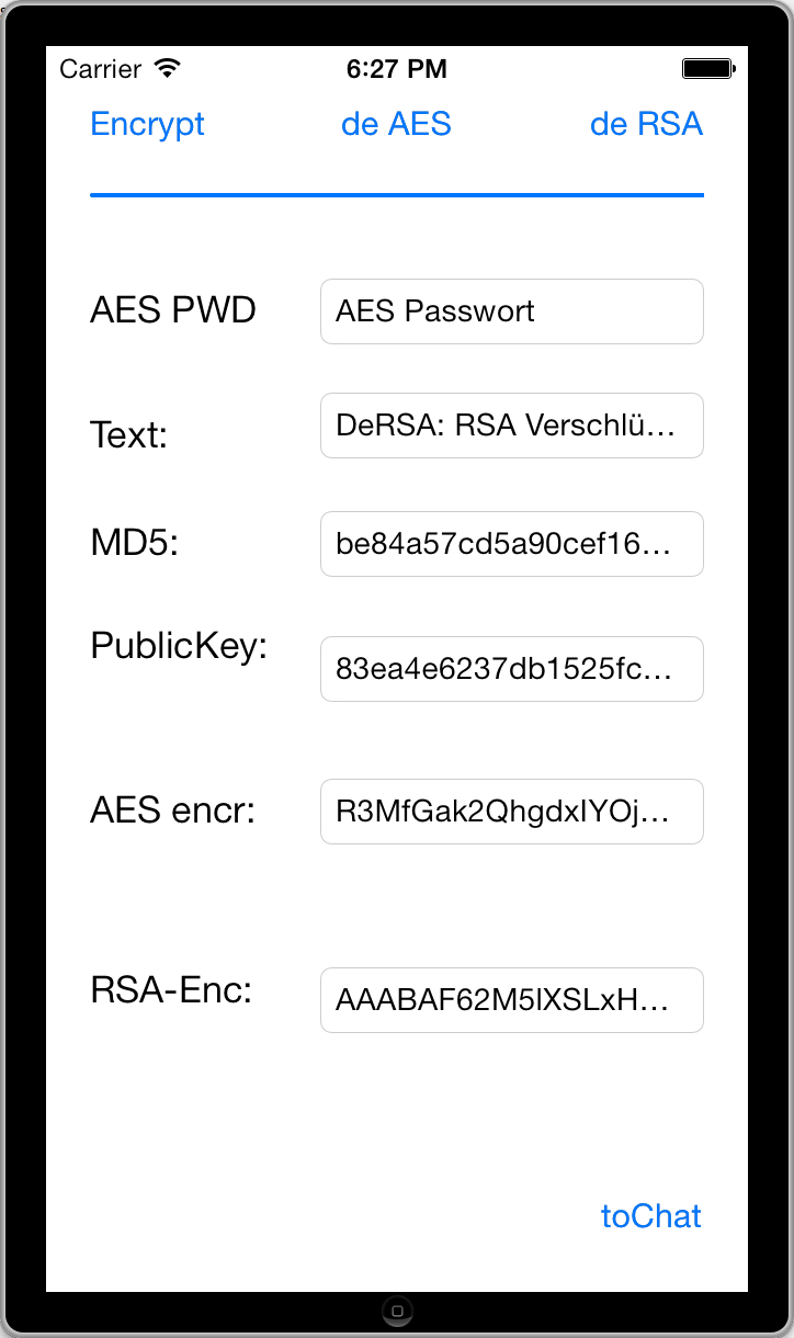 die RSA Implementierung hab ich versucht als Library zu bauen, die sowohl ein Target für iOS als auch OSX hat. Ich habe auch einige Unit-Tests implementiert, die die Funktionen ziemlich weit abdecken. Das klappt auch so weit, allerdings habe ich es bisher nicht geschafft, ein iOS erfolgreich dagegen zu linken. Er findet immer einige Implementierungen nicht, was ich mir nicht wirklich erklären kann. Da ist also noch was zu tun.